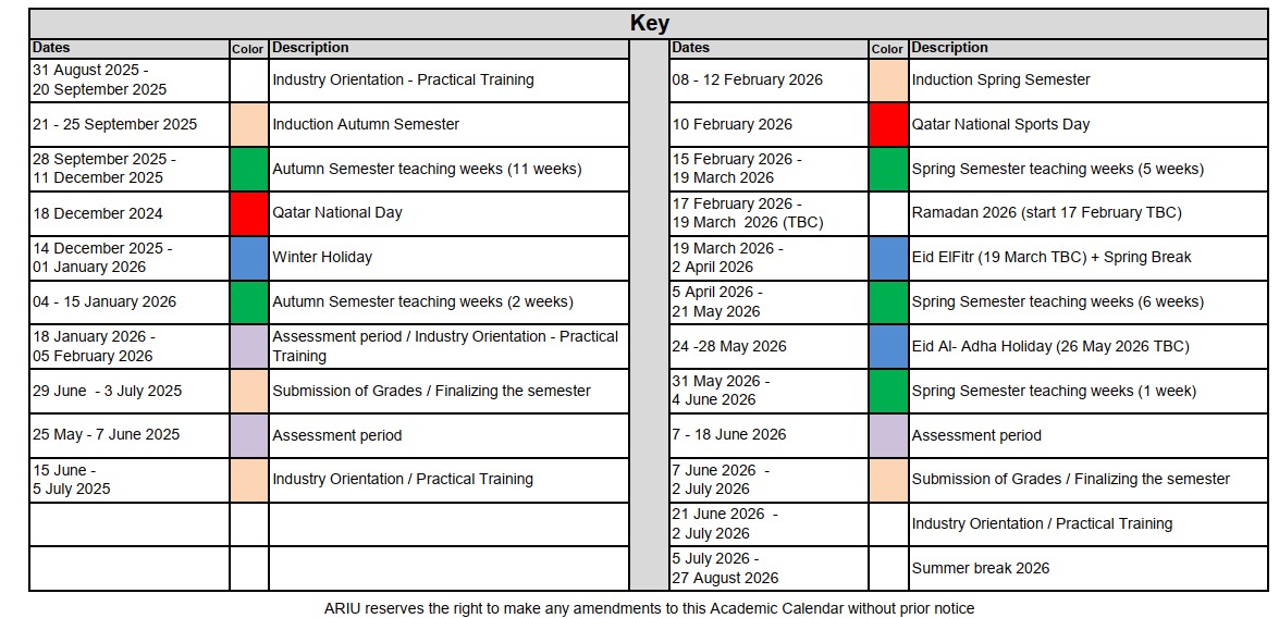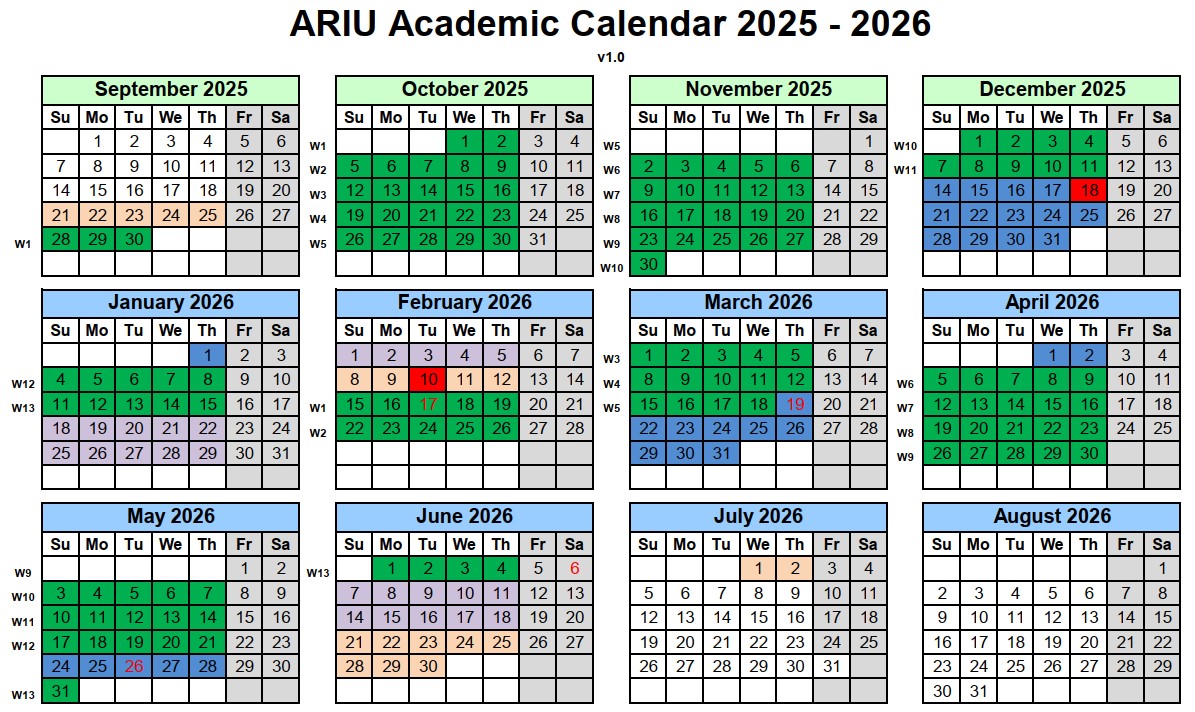 ARIU Academic Calendar 2025-26